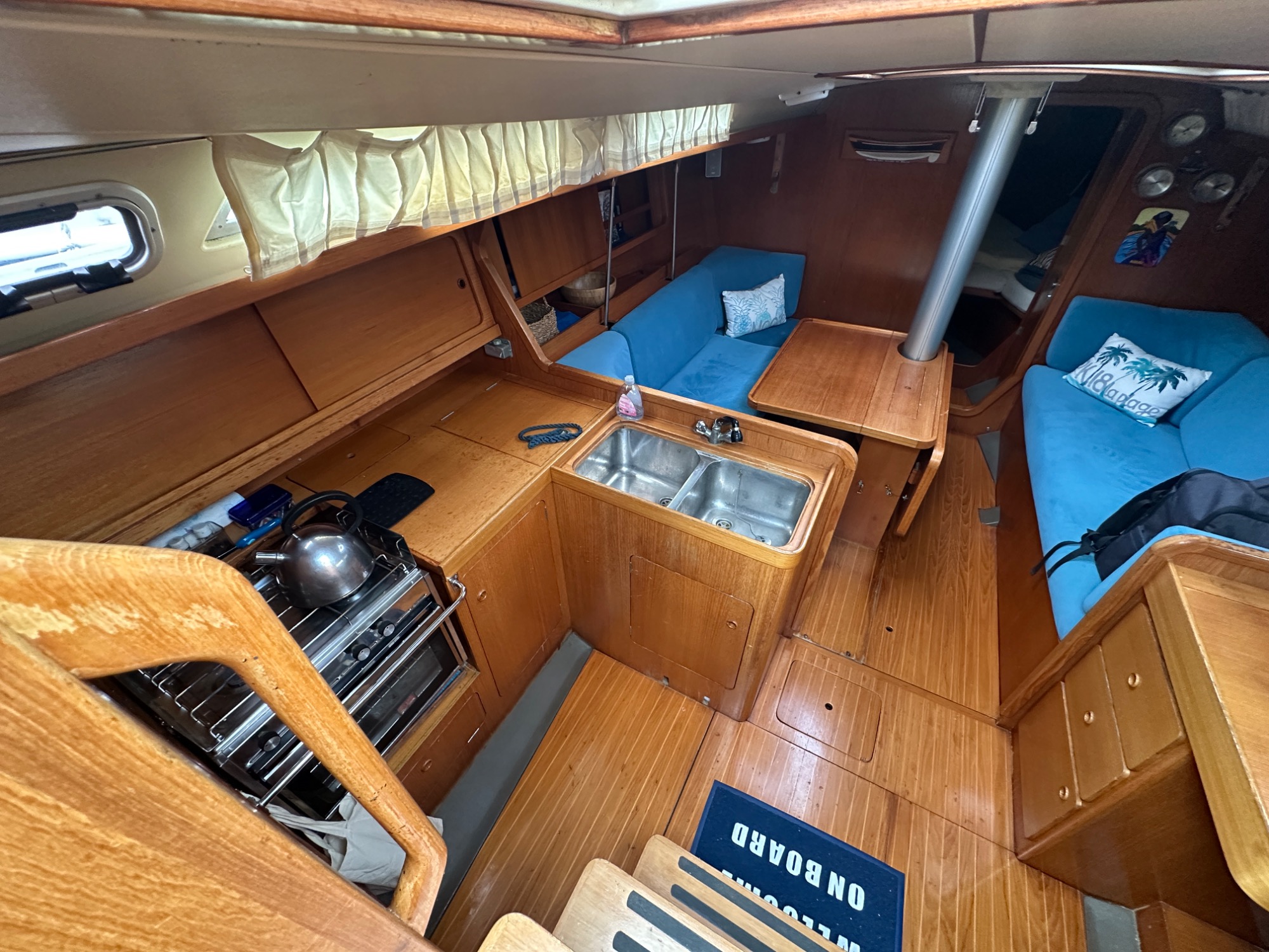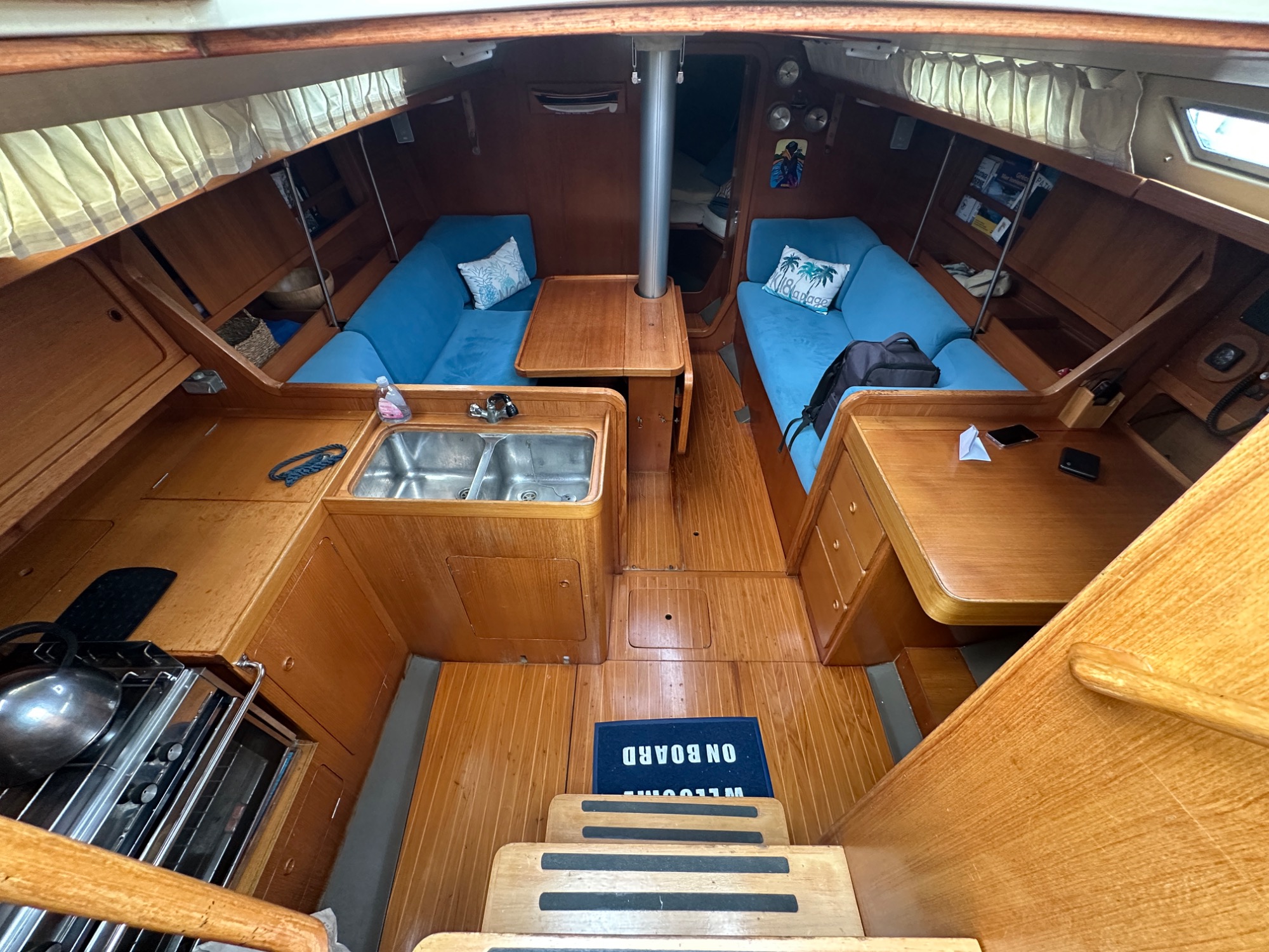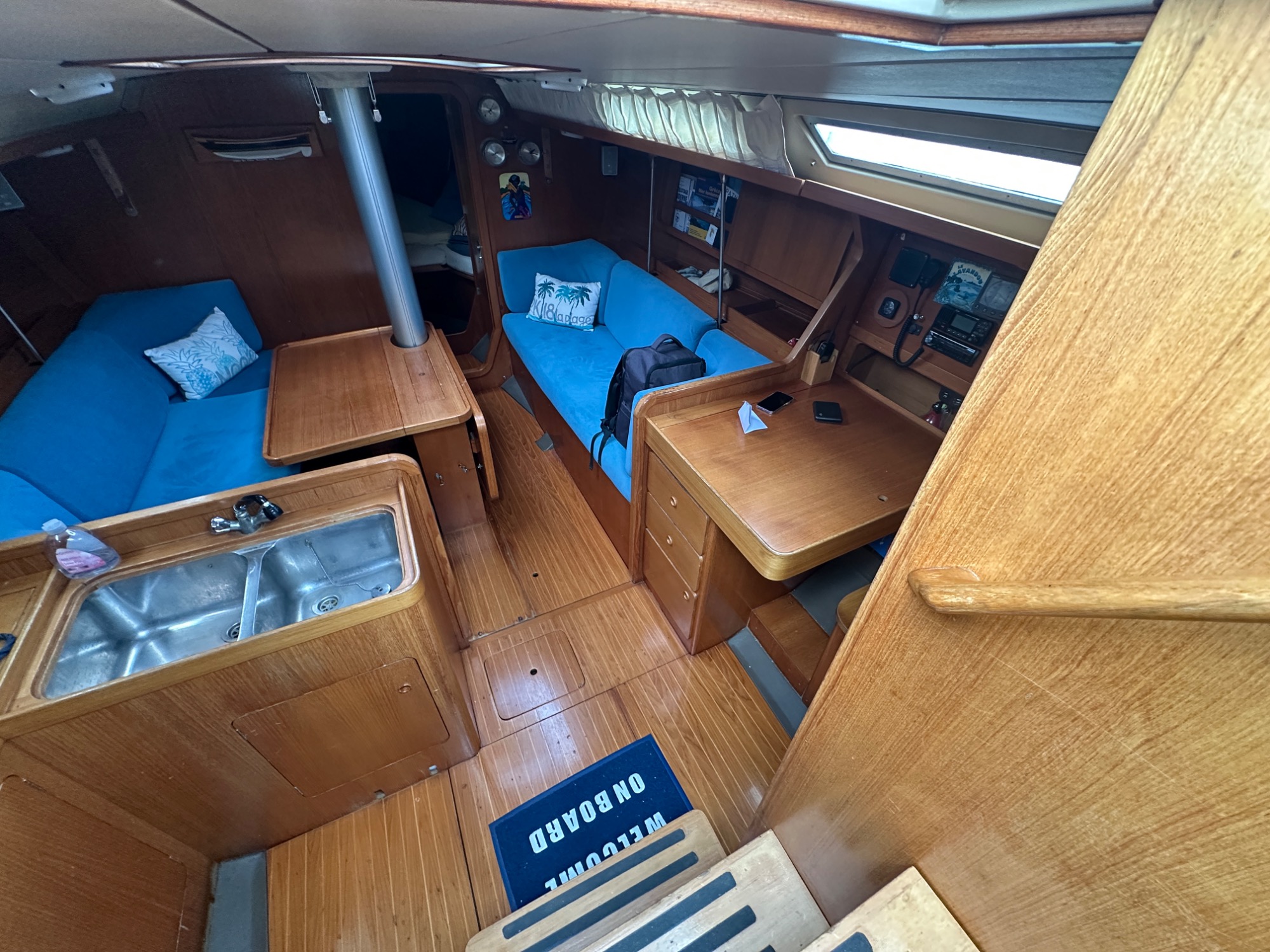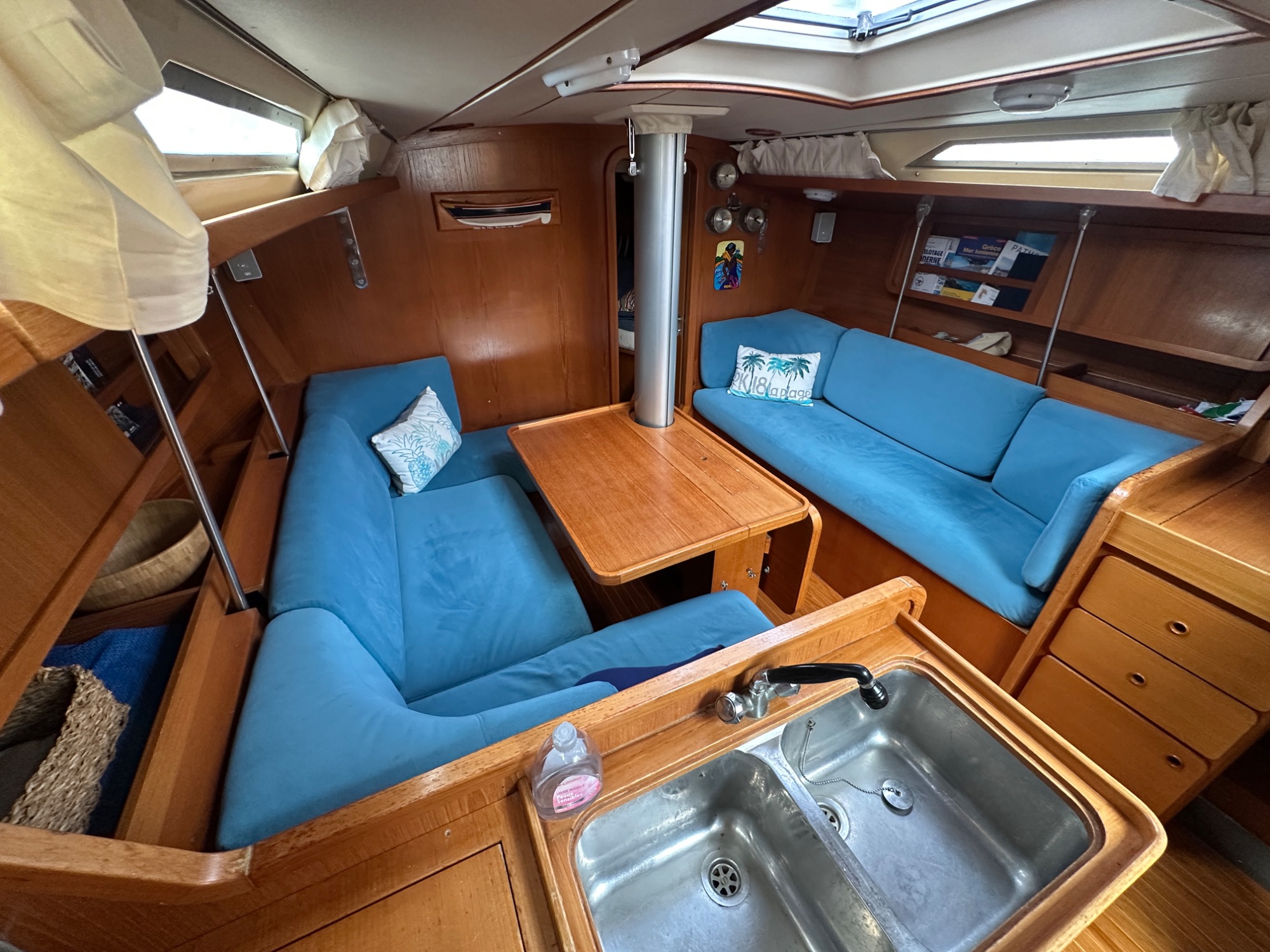 Coque saine, gréement de 2017 et accastillage en très bon état, moteur fiable et régulièrement suivi. Intérieur chaleureux en boiseries, propre et bien conservé, offrant 3 cabines, un carré spacieux et une cuisine fonctionnelle.