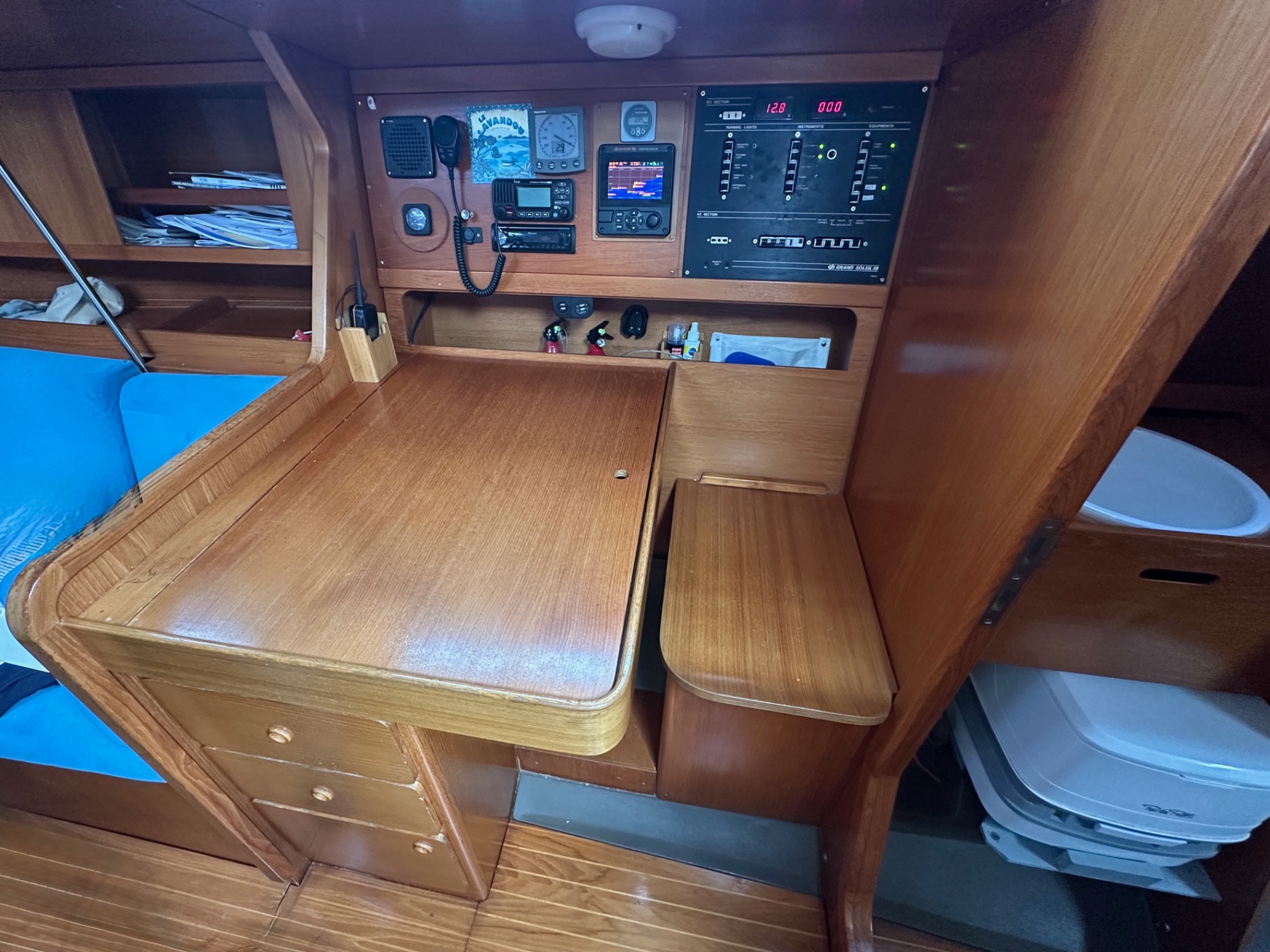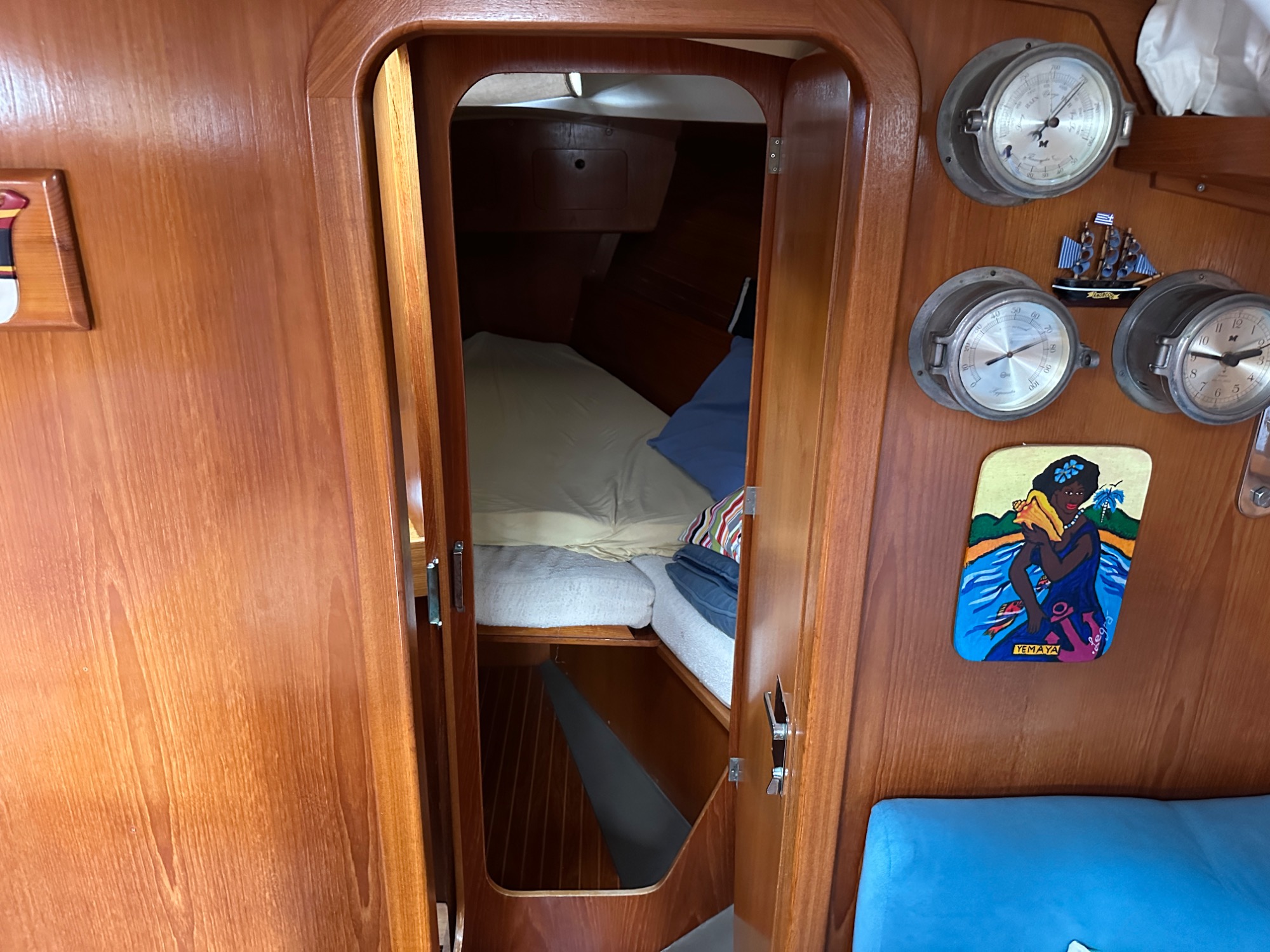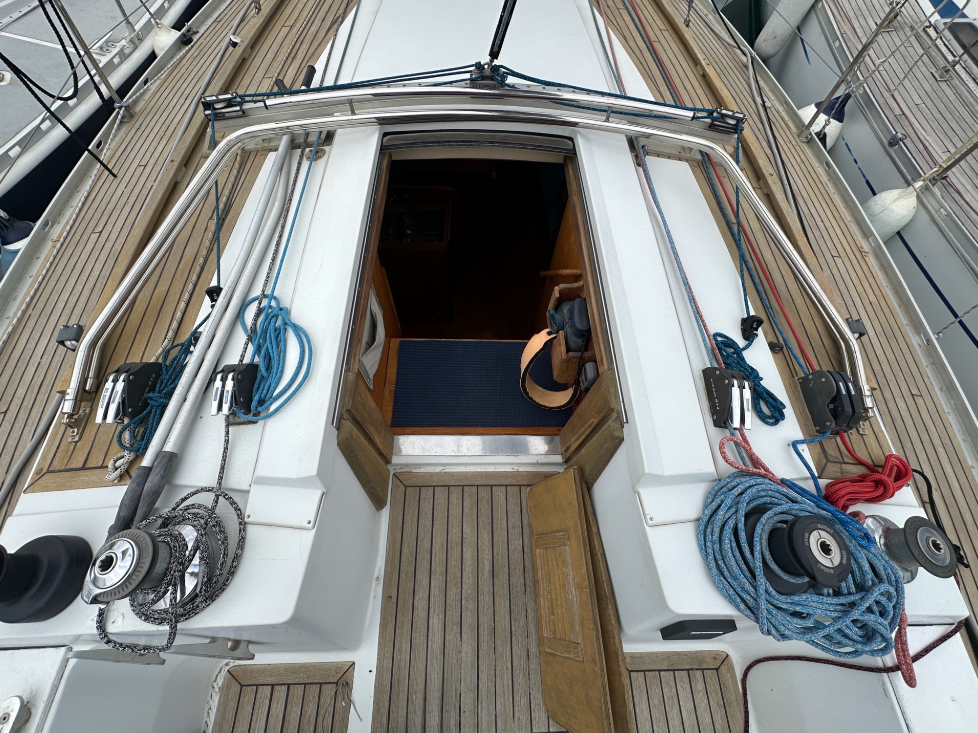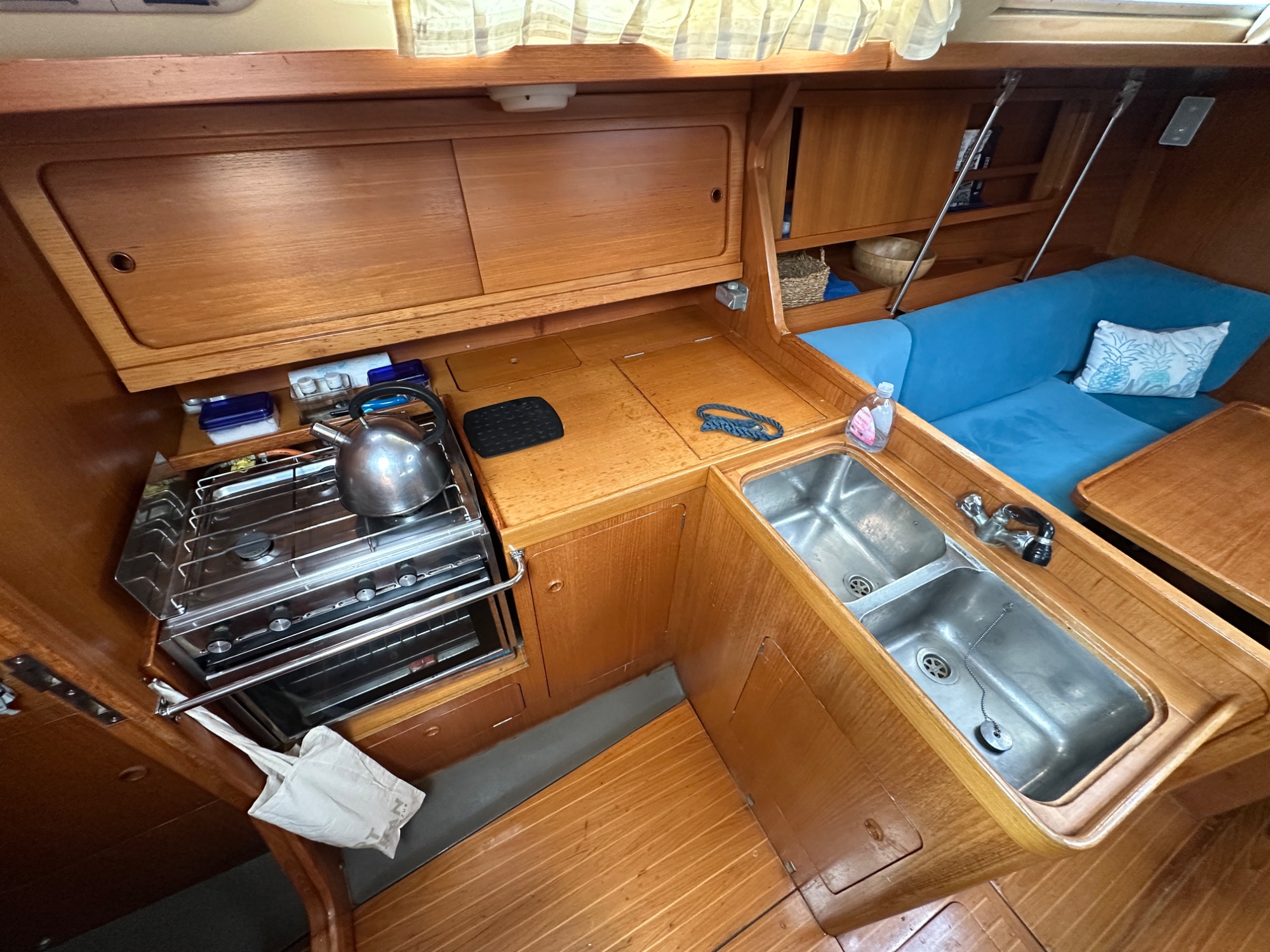 Coque saine, gréement de 2017 et accastillage en très bon état, moteur fiable et régulièrement suivi. Intérieur chaleureux en boiseries, propre et bien conservé, offrant 3 cabines, un carré spacieux et une cuisine fonctionnelle.