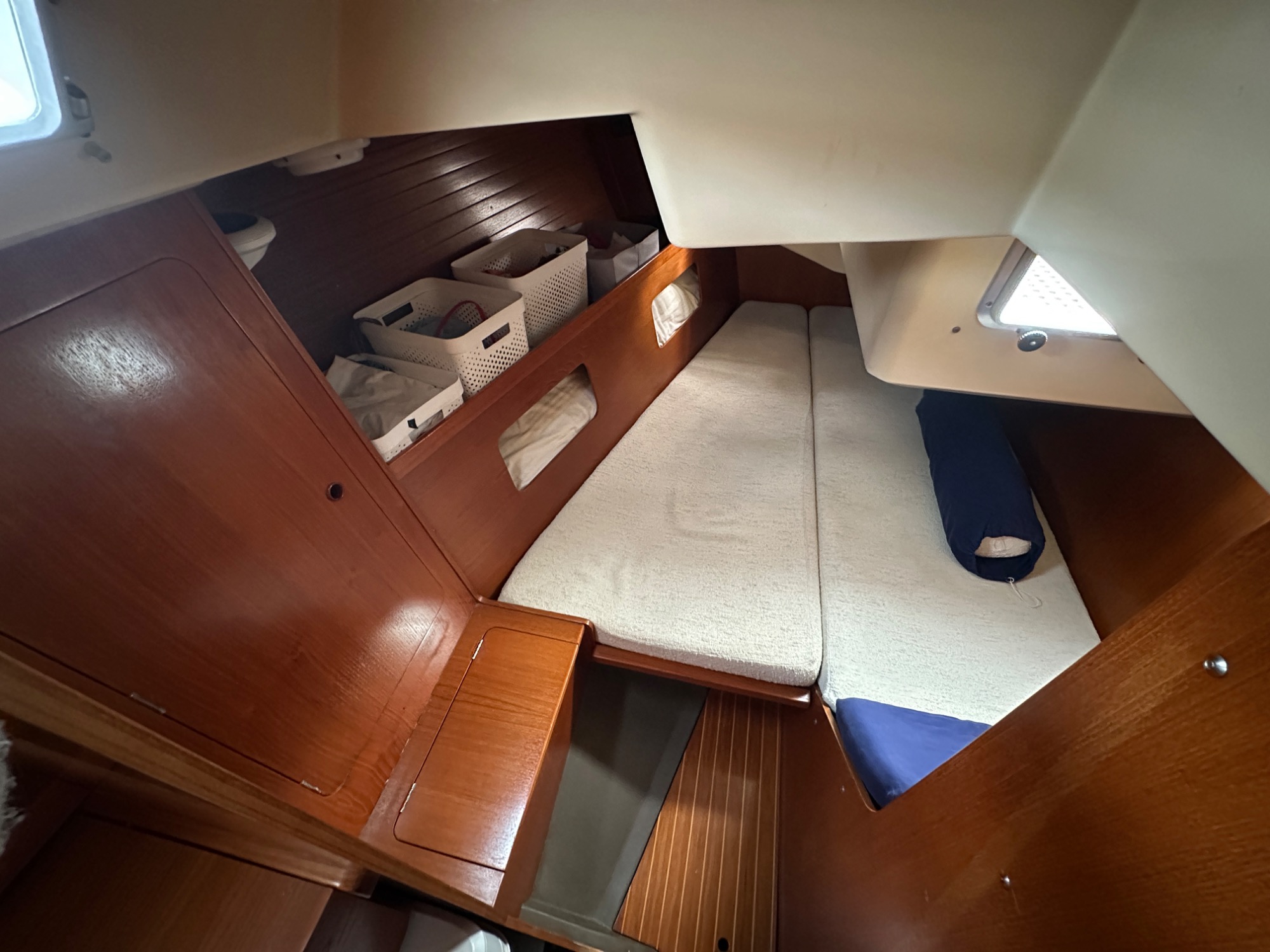 Cabine à 2 lits superposés (décalés) à l'arrière bâbord