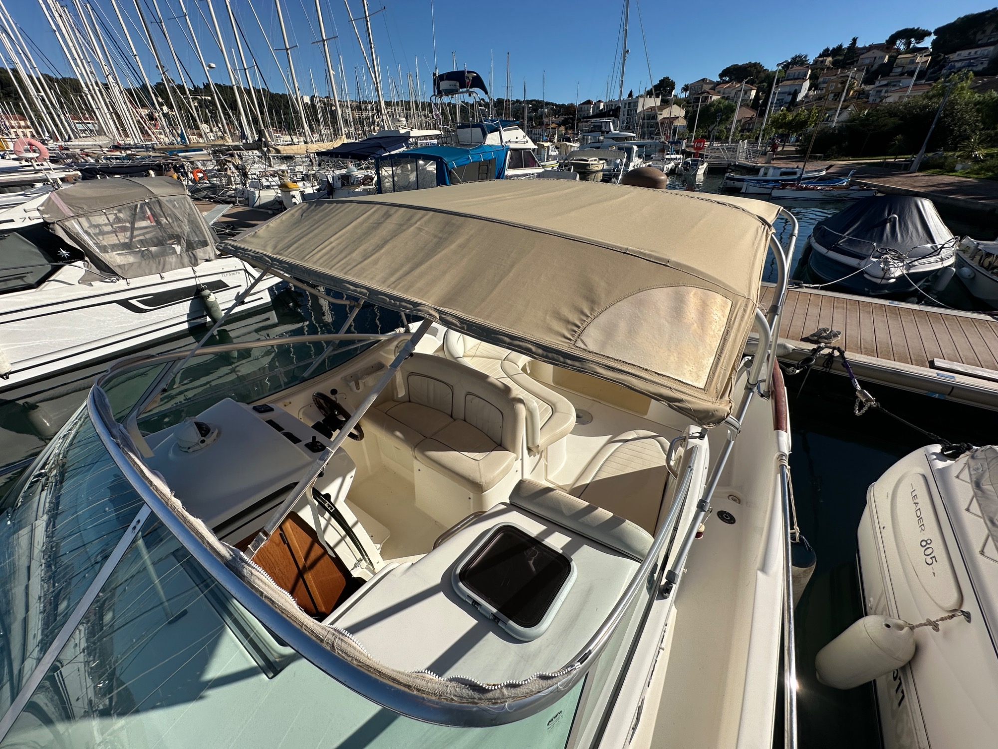 Superbe Jeanneau Leader 805 de 2005 équipé d’un moteur Volvo Penta D4 260 CV diesel – puissant, économique et parfaitement entretenu par des professionnels. Ce modèle est l'un des plus apprécié pour sa convivialité et son confort tout en conservant un aspect sportif et élégant.